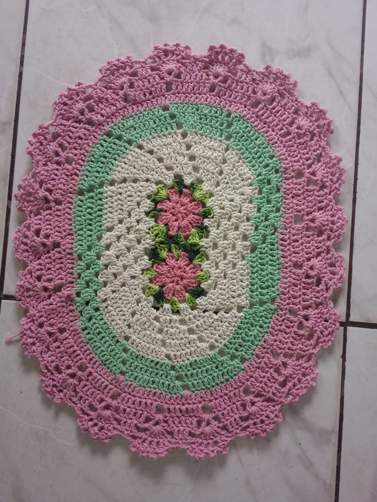 Delicado e feito à mão, este tapete traz a harmonia das cores suaves de rosa bebê e verde bebê, perfeito para decorar quartos e salas com charme e aconchego. Com dimensões de 62 cm de altura e 50 cm de largura, é compacto, funcional e leve, pesando apenas 367gramas. Produzido com materiais de alta qualidade, é fácil de lavar e ideal para quem valoriza peças únicas que unem beleza e conforto.