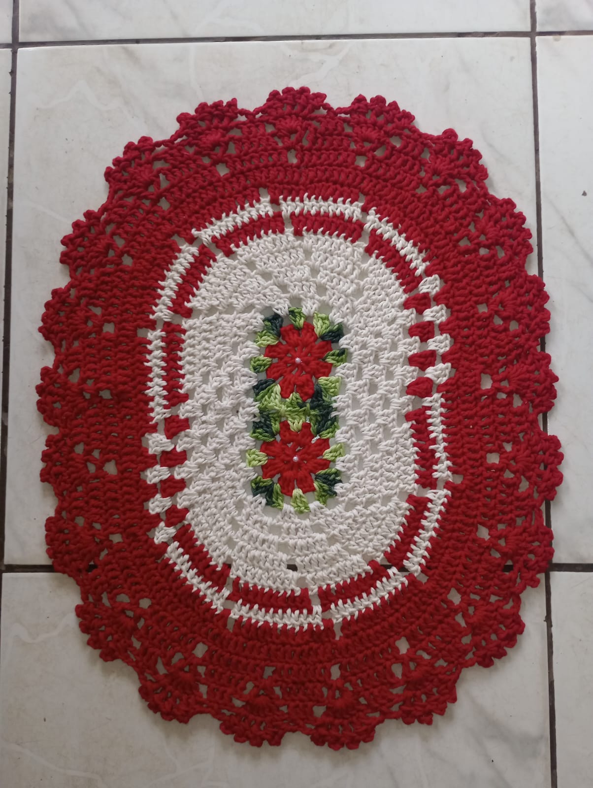 Tapete de Crochê Vermelho – 63 cm x 50 cm